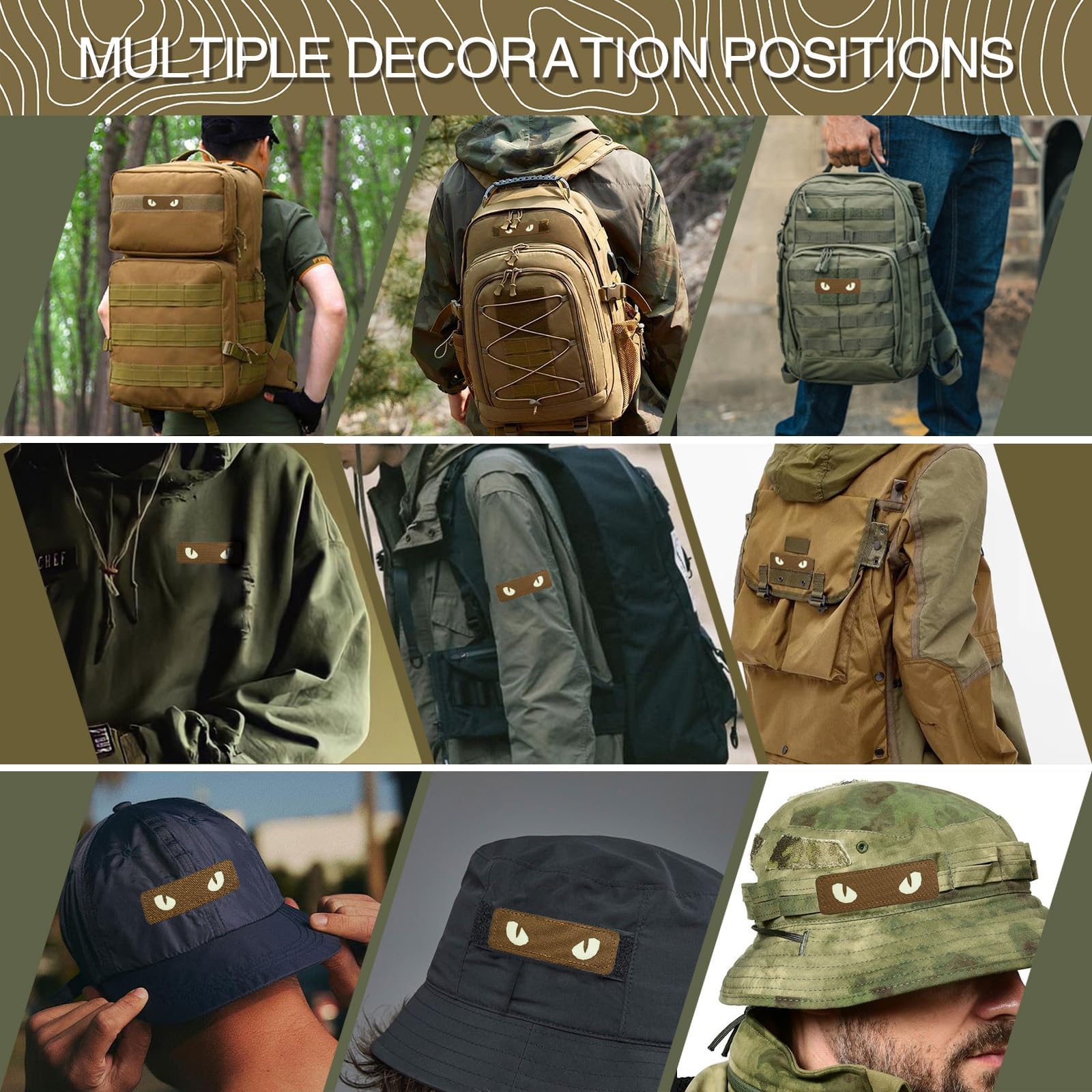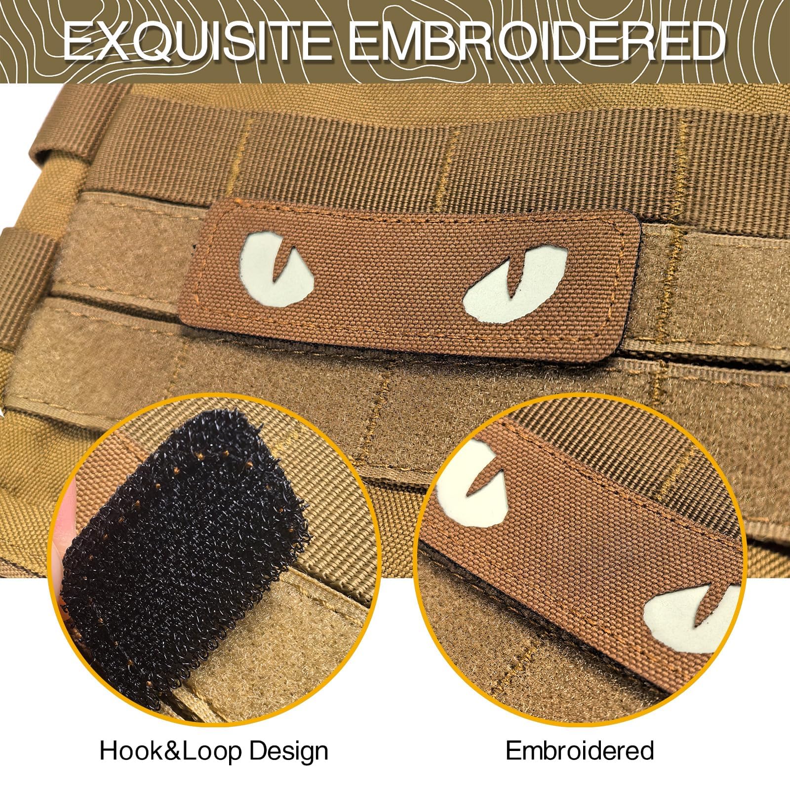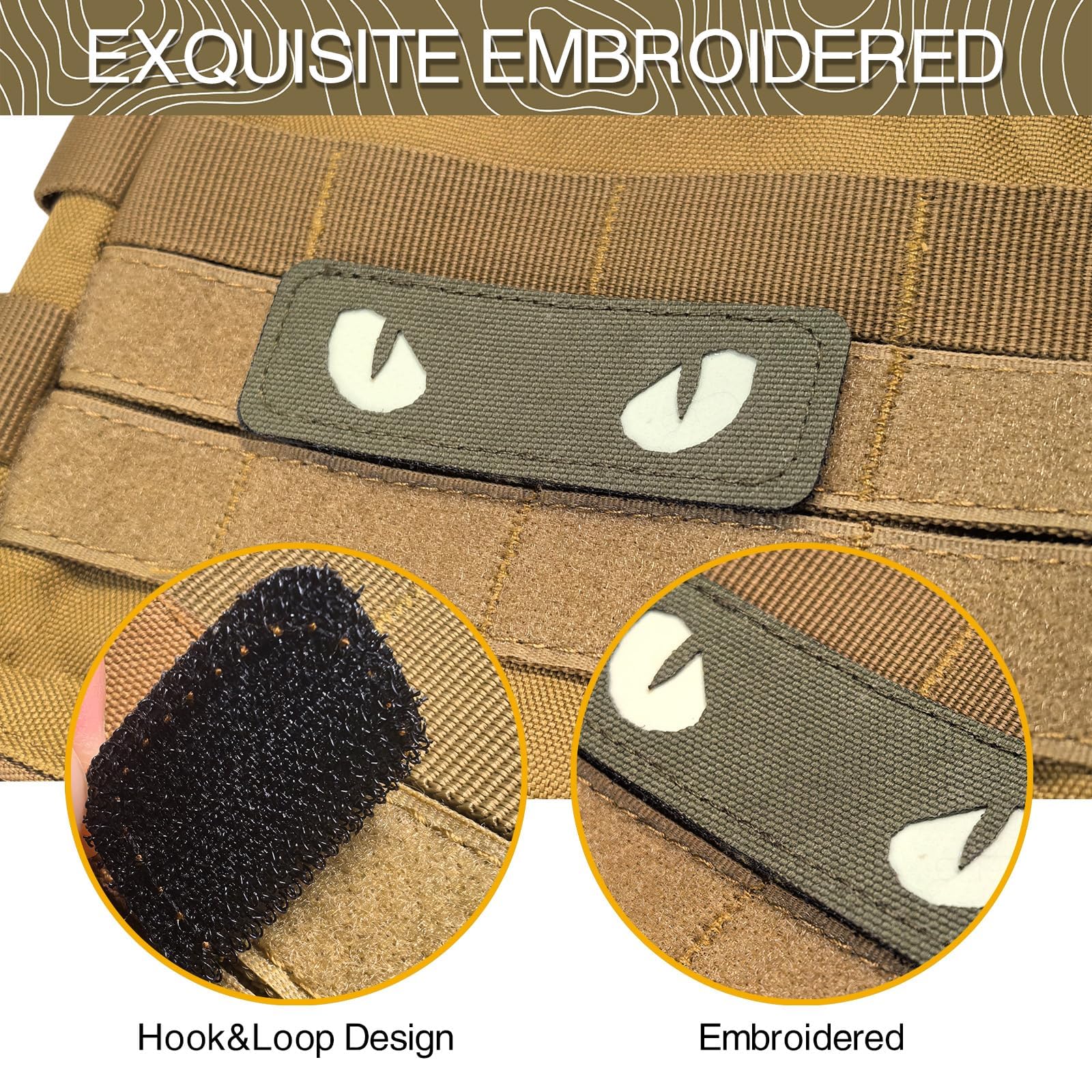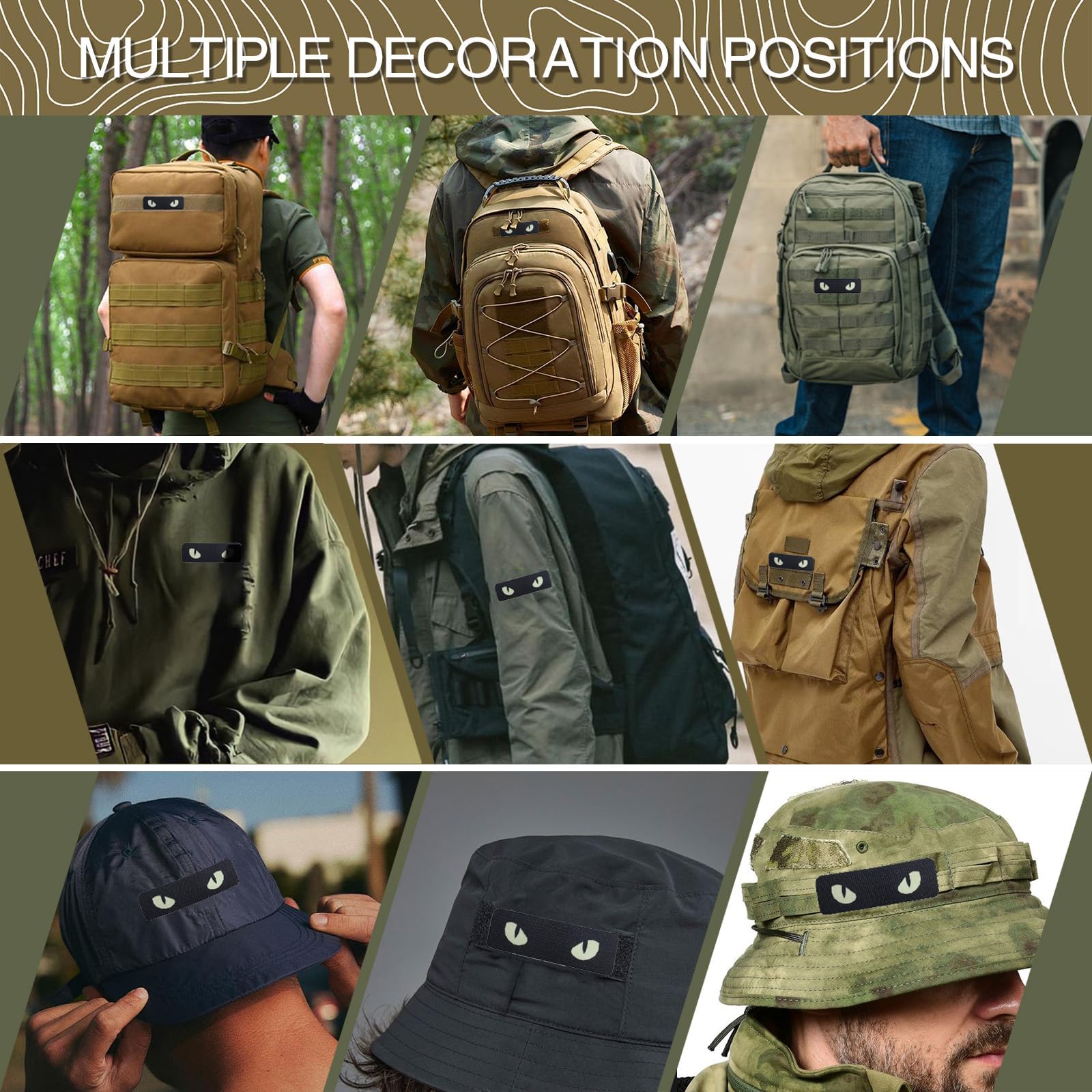 - LASER-CUT DESIGN: Smooth-edged cat eye emblem with vibrant colors and no fraying. It can absorb sunlight or other light source and glow- in-the -dark. Lightweight yet rugged for seamless integration on any gear with hook.